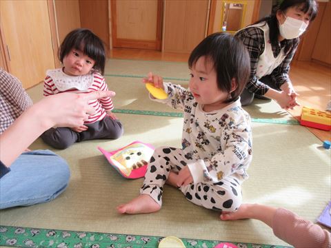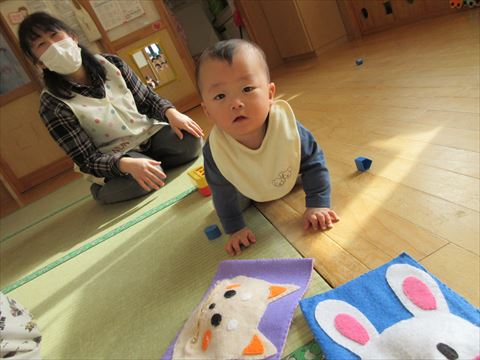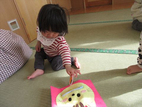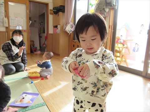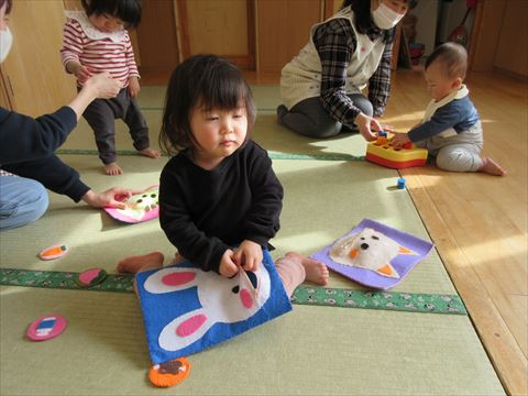 ひよこ組さんは、今日初めての手作り玩具🐣