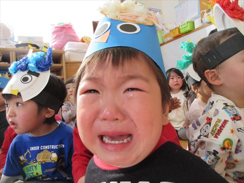 今年の鬼はなんだか泣きながら登場です。