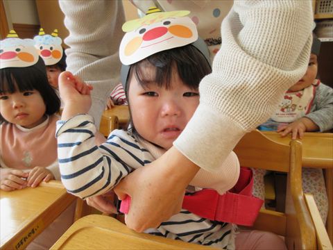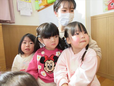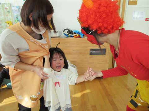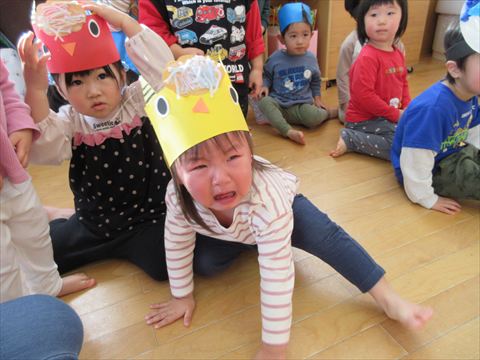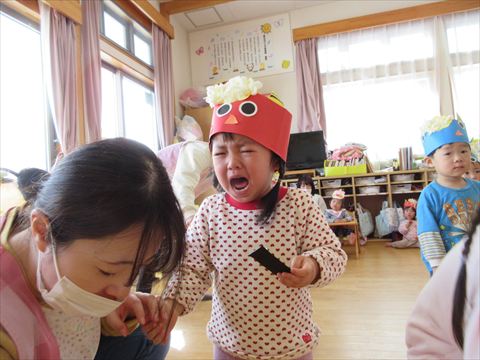 それでも、突然の鬼の登場に怖がるお友だちも続出しました。