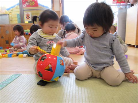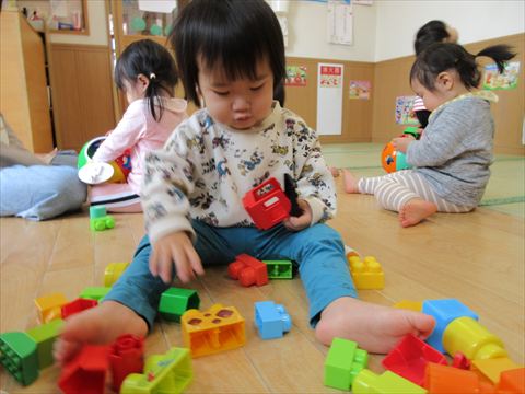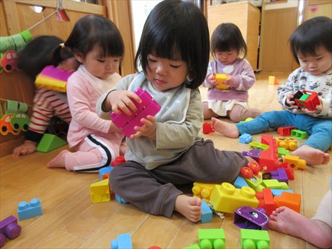 ひよこ組さん、ゆっくりブロック遊び♬