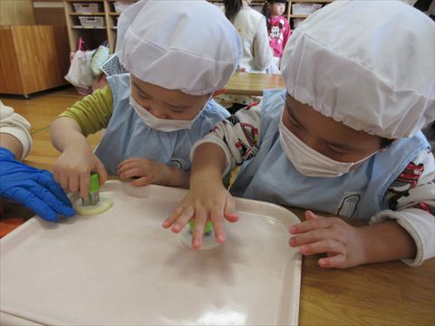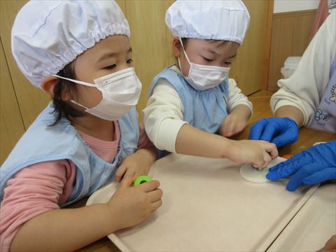 最初は、恐るおそる型抜きをしていた子ども達も