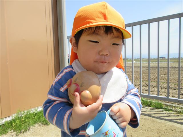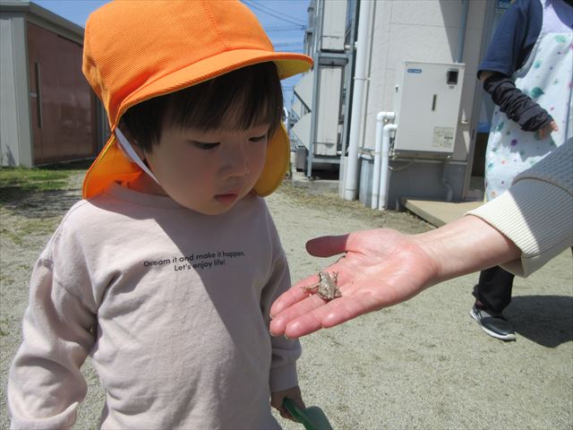 園庭にまたカエルが遊びに来てくれましたよ🐸