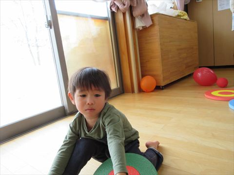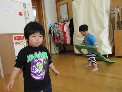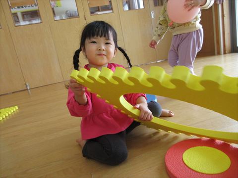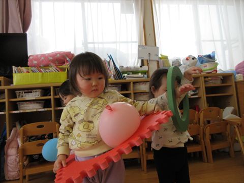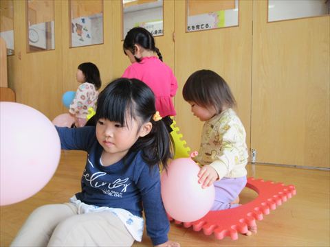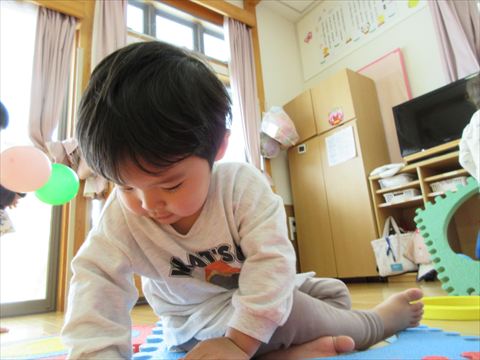 うさぎ組さん、パズルマットや風船で遊んでいます。