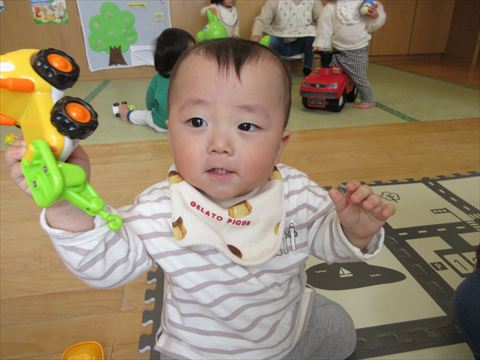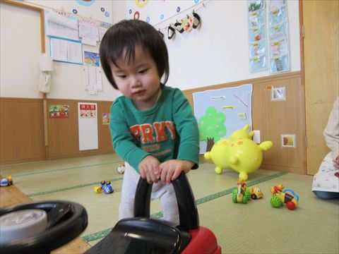 ひよこ組さん、車で遊んでいます。