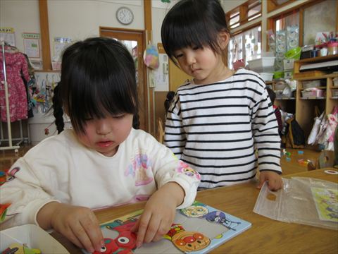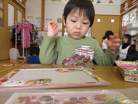 ぱんだ組さんは、パズルやブロック、制作など楽しんでいます。