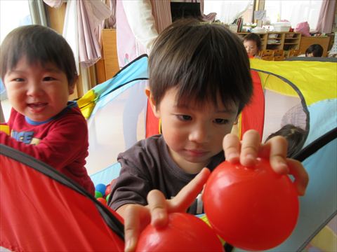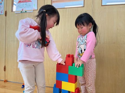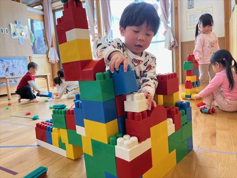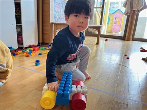 ぱんだ組さん、大型レゴブロックで遊びました。