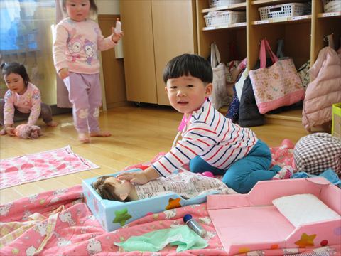2025.02.27 今日のかめら(^^♪ ひよこ組さん、朝の会をしています。 みんな、先生の話をしっかり聞いています。 その後は、雪遊びをしましたよ~⛄ 雪遊び♬ 遊び方も上手になってきました。 ぱんだ組さんとうさぎ組さんは異年齢児交流をしました。 仲良く一緒に遊びます。 ベッドには双子?? お母さんは、忙しいね~😊 自分の好きな遊びを楽しみました。💕 今日は、気温も少し上がり日差しも入ってきました。 明日で2月が終わりです。 もう少しで春ですね。(❁´◡`❁)