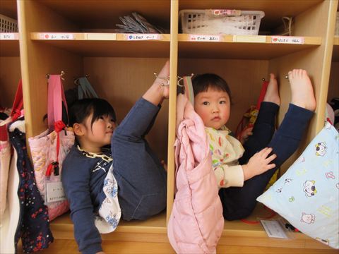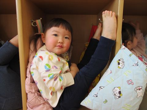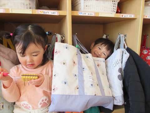 うさぎ組さん、ロッカーの中からこんにちわ。