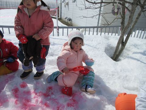 ひよこ組さんも、雪遊びを一緒に楽しみました。