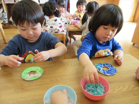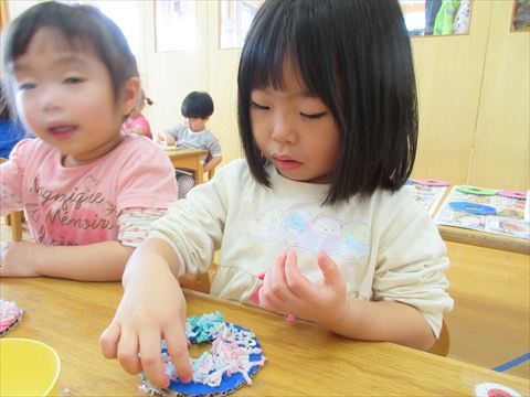 2025.03.06 今日のかめら(^^♪ ひよこ組さん、プールステックでトンネル作りましたよ。 仲良くトンネルくぐります。♡ 型はめも上手になりました。 うさぎ組は、雪遊びをしました。 朝の会で【ちゅうりっぷ】を歌っています。🌹 ぱんだ組さんは、美味しそうなものに飾りをつけています。 【ドーナツ!!】 オリジナル・カラフル・ドーナッツ🍩 どんなドーナツができるかな? 今日もたくさん遊びました。 また、明日もお持ちしております。 【園内感染情報】 ヒトメタニューモ感染症 1名