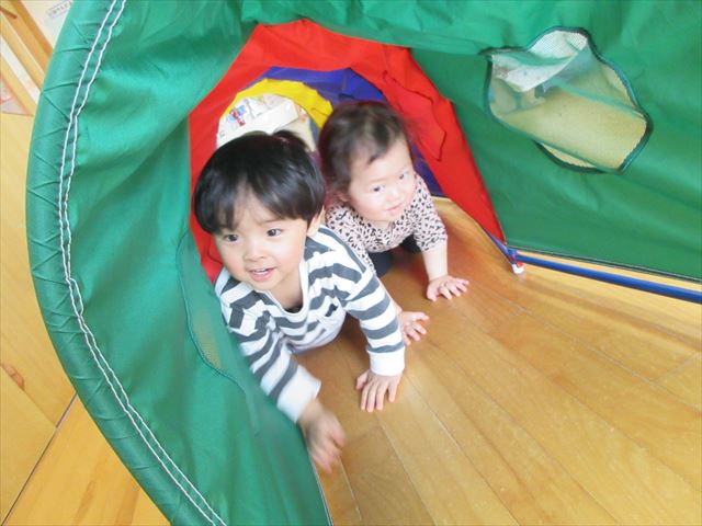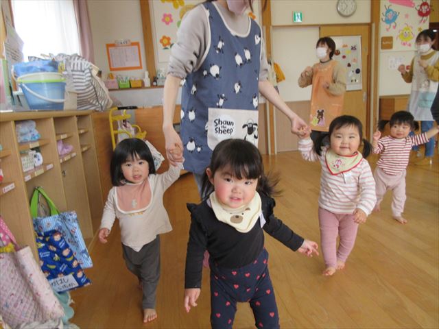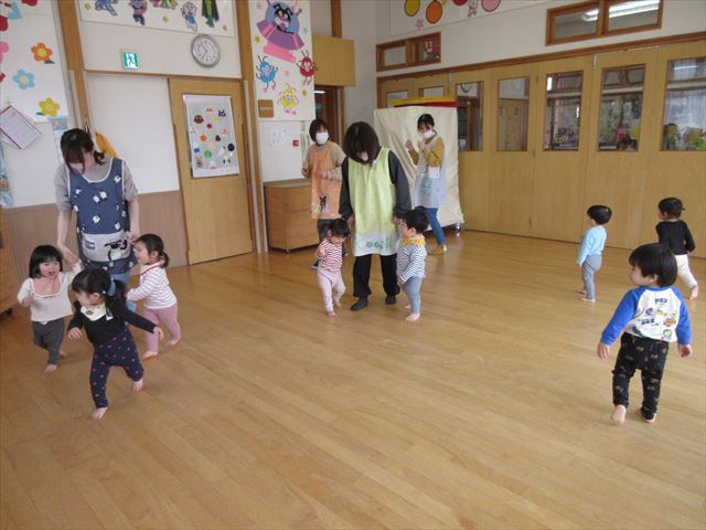 2025.04.14 今日のかめら(*^^*) ぱんだ組のお友だち、 トンネルをくぐり部屋で元気いっぱい 遊びましたよ~( *´艸`) うさぎ組のお友だちは 音楽に合わせてお部屋で体を動かしました♪ お友だちや先生と手をつないで ニコニコかわいいですね♡ ひよこ組のお友だちもニコニコです✨ 給食もいっぱい食べましたよ~\(^o^)/ さて、今週もはじまりました。 今日は雨も少し降って 肌寒い感じがしましたね! 気温の変化が大きい時季ですので 体調管理には十分にお気を付けくださいね! また明日もお待ちしています(*^^*)