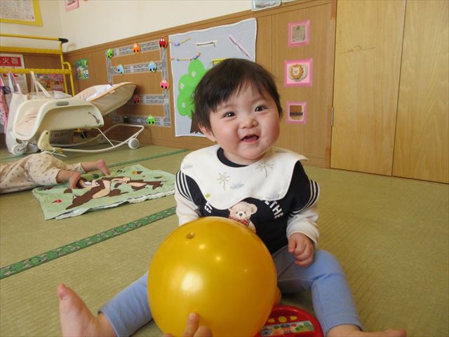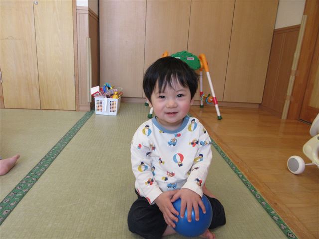 お部屋の中でもボール遊びをしましたよ( *´艸`)