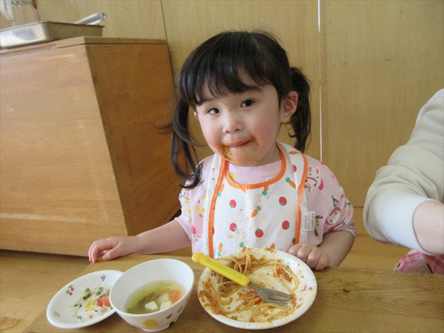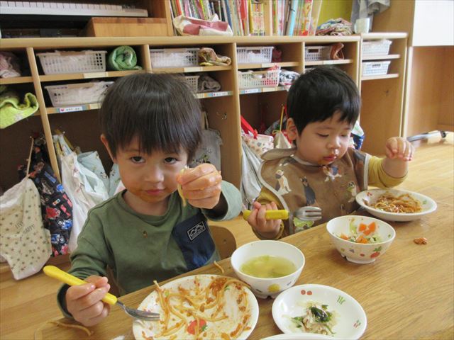 今日の給食はミートソーススパゲティ🍝