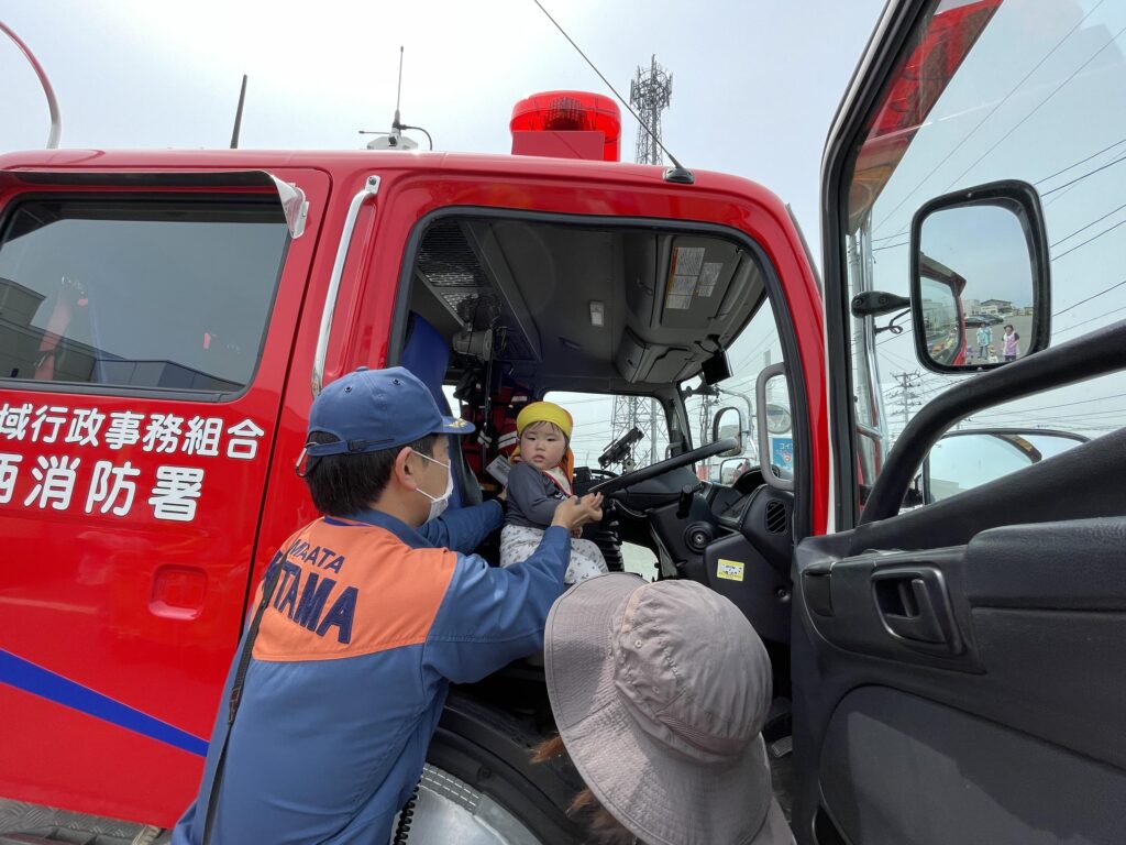 消防車の中を見せてもらったり、