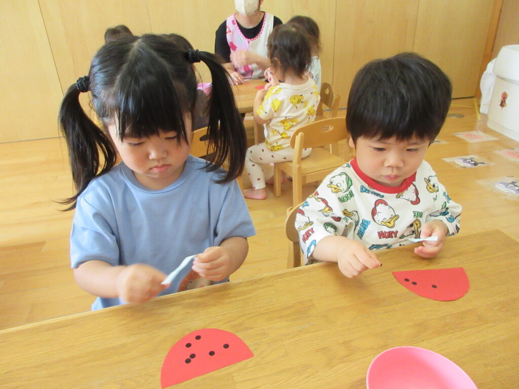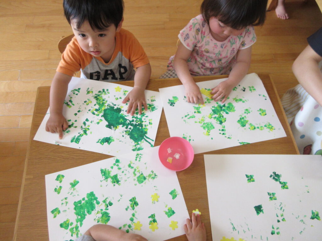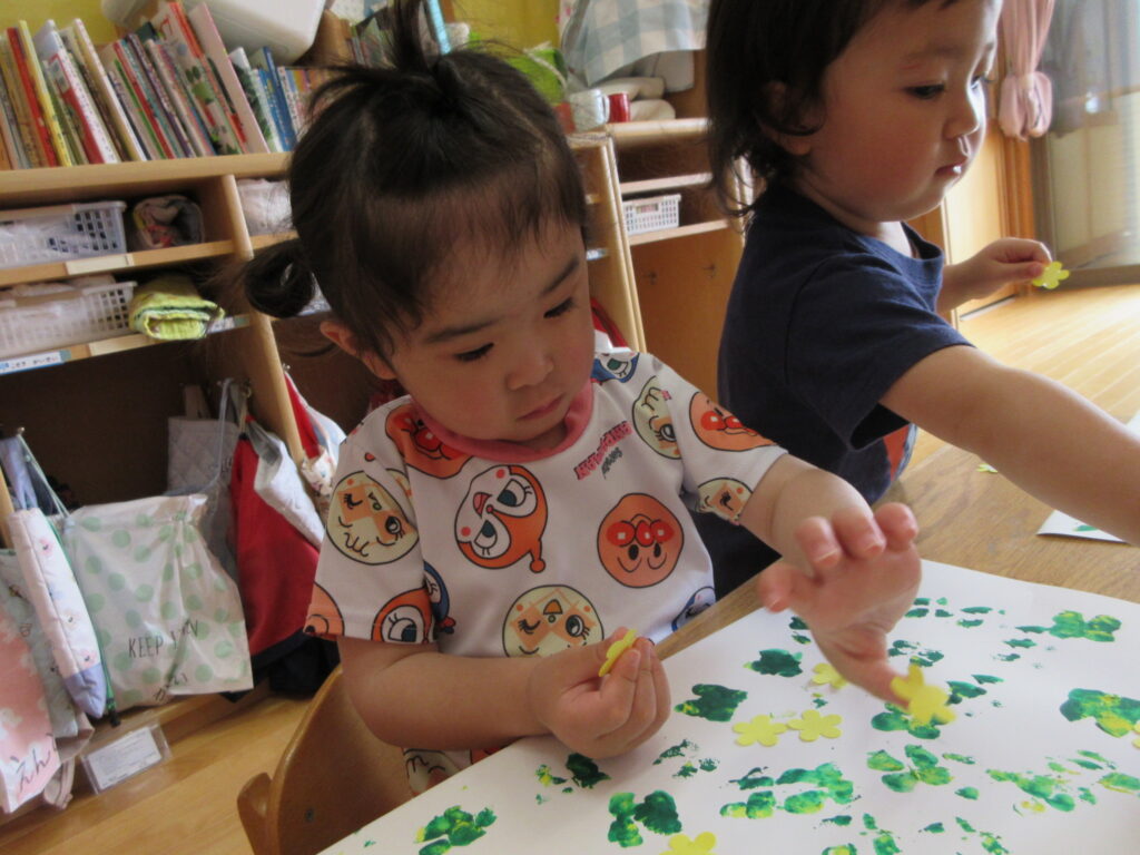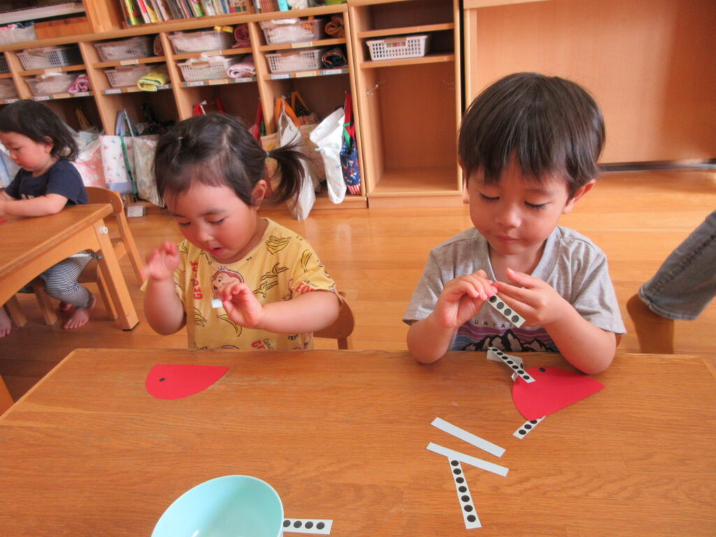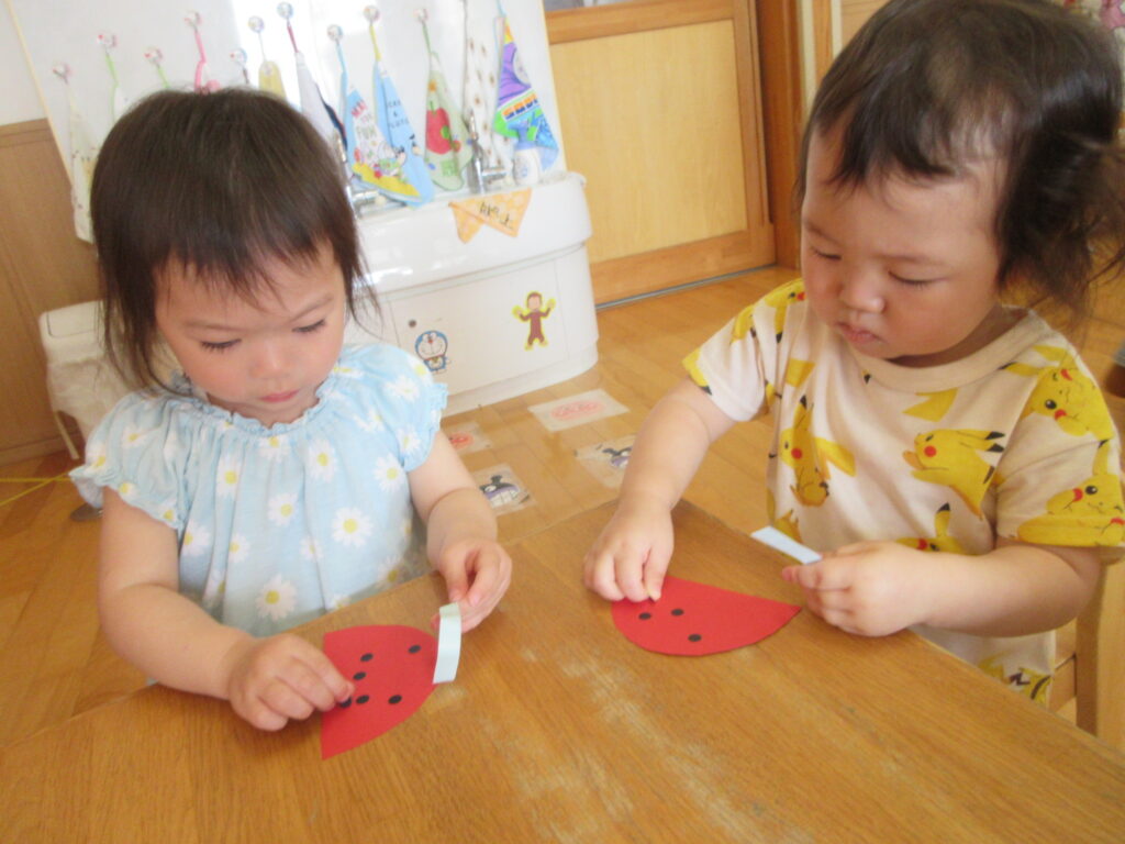 シール貼りに夢中(*^^*)