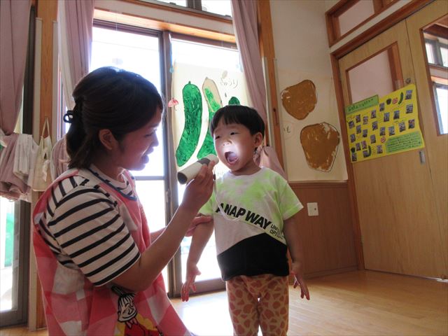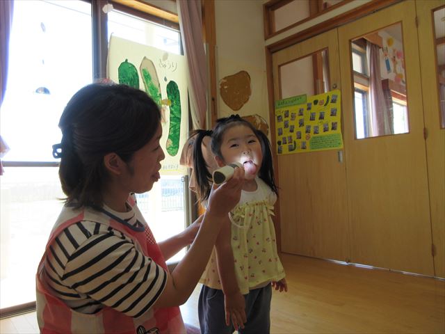 「お口をあーん、い~ってするよ~