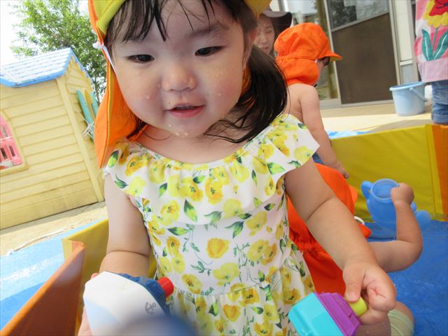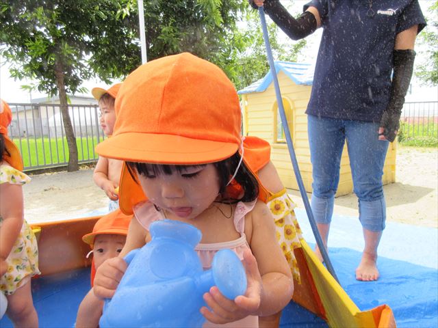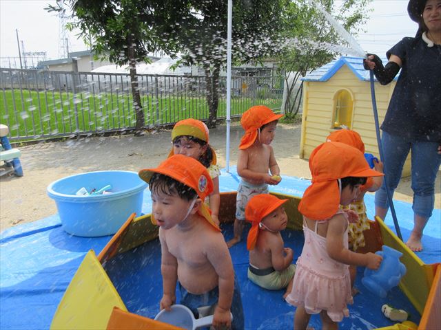 日陰を作り水遊びを行うことができました。