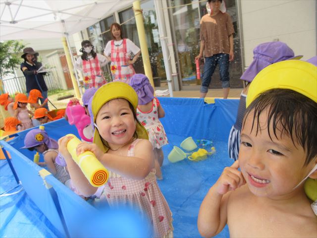 「(水鉄砲で)水かけちゃうぞ~!」