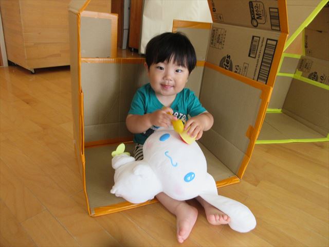 室内で段ボールハウスを出して遊びました✩