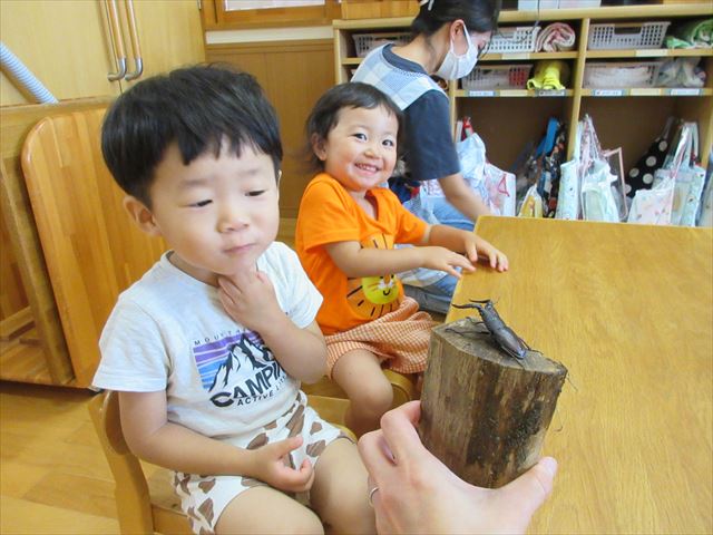 職員がクワガタを連れてきてくれたので、