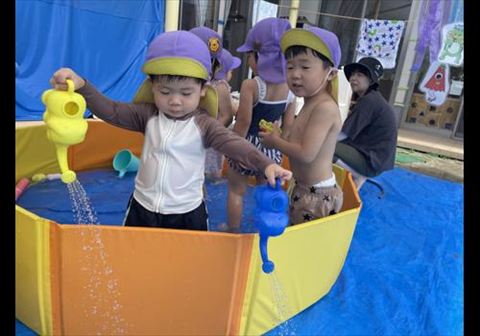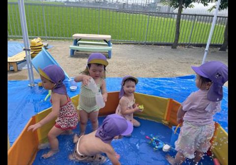 2025.07.04 今日のかめら(*^^*) ぱんだ組さん、今日もプールです。 水が気持ちいいね。 水遊びも上手になってきました。 うさぎ組さんは、お部屋で遊びました。 あっキラキラ☆ ひよこ組さん、初めての水遊び💕 ひよこ組さんは、全員げんきです!! 今週からプール遊びが始まり、園庭はとても賑やかです。 暑い日が続いています。ご自愛下さい。 週明けは、7日七夕会です。🎋お楽しみに~😊