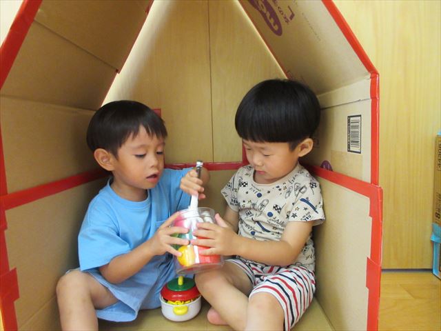 うさぎ組も室内で手作りおもちゃで遊びました!