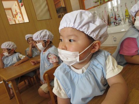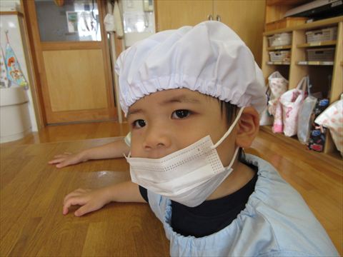 エプロン、マスク、帽子も自分でつけられるようになったよ。