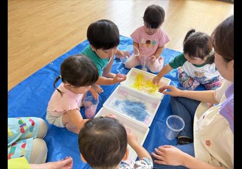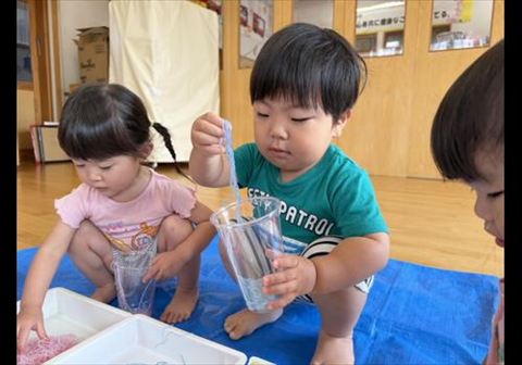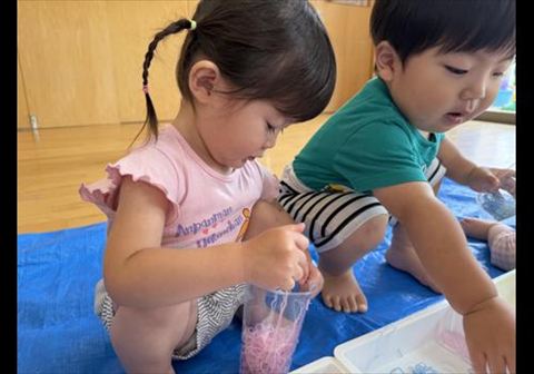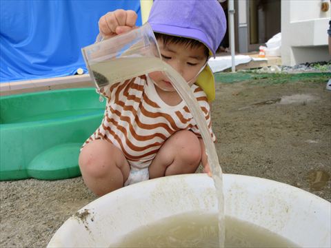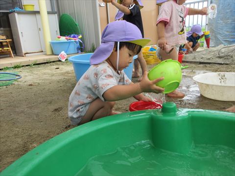 ひよこ組さんは、好きな遊びを楽しんだり、沐浴をしましたよ。
