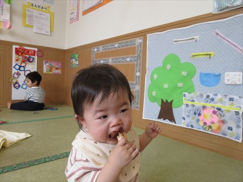 ひよこ組さんも、食べるから小さくちぎってね~😊