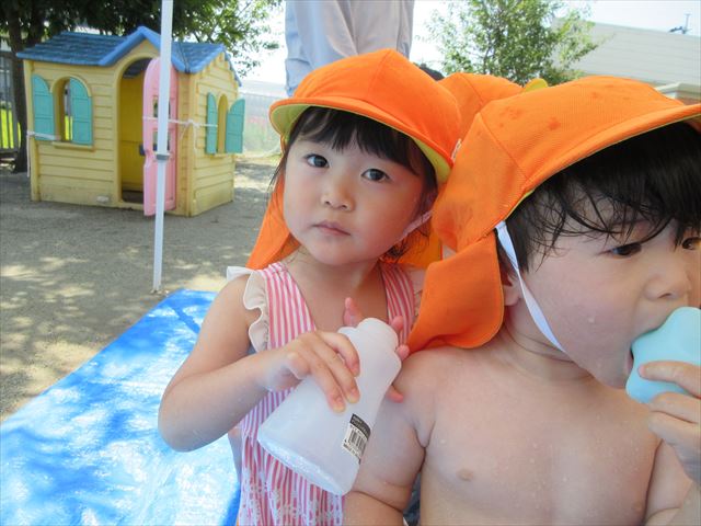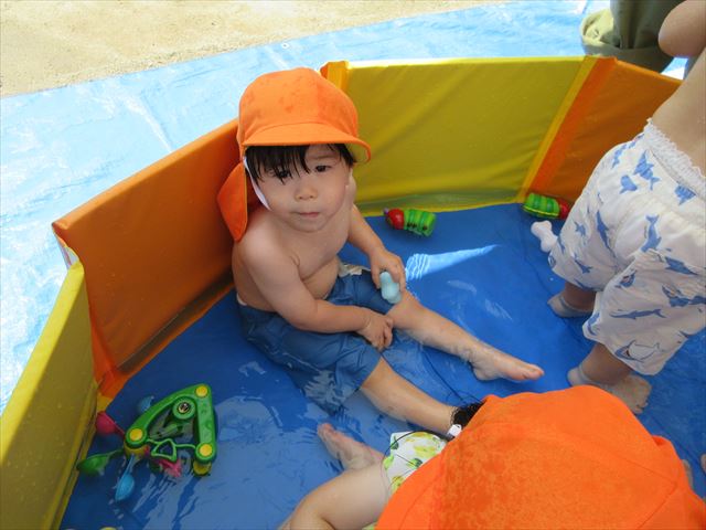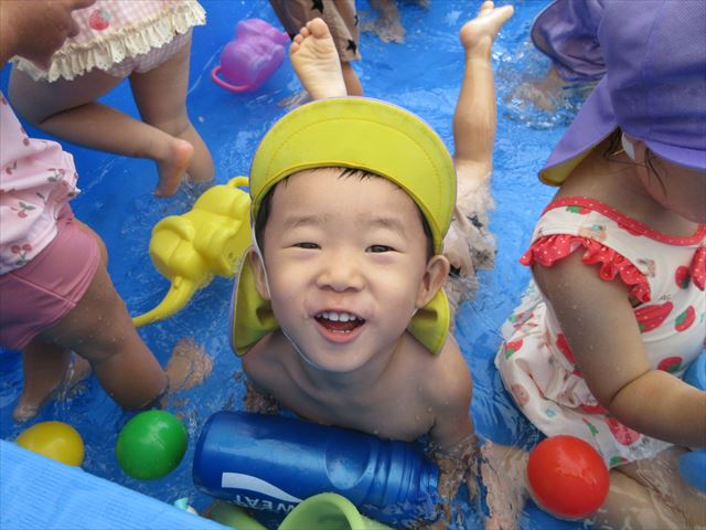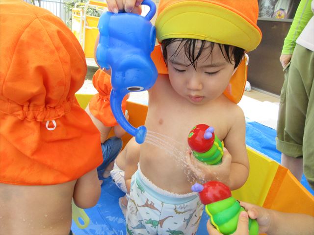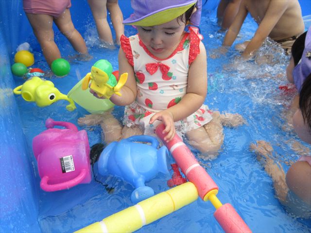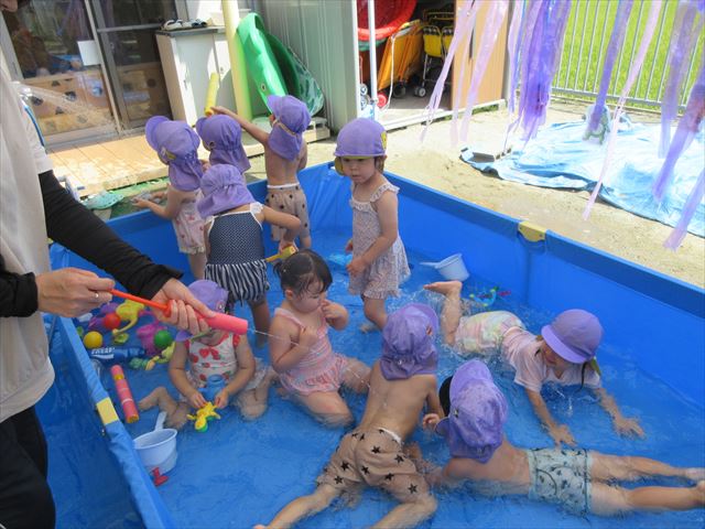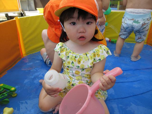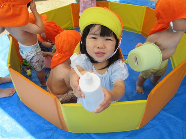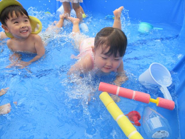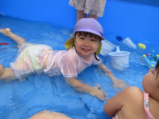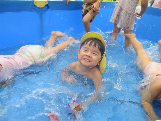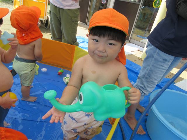 2025.08.26 今日のかめら(*^^*) 今日は園庭で水遊び\(^o^)/ 気持ちよさそう~✨ 「みてみて~ワニさん泳ぎだよ~🐊」 チャプチャプチャプ!! ゾウさんシャワーに水を汲んだり 桶に水を汲んだり・・・ 流れる水や はねる水を見るの楽しいね♪ さて、プール遊びをできるのも あと少しです。 まだまだ暑く もっとプールに入りたくなっちゃいますが、 来週から9月となります。 これから少し涼しくなっていくのでしょうか。 今週末には誕生会もあります。 楽しみにしていてくださいね! 明日もお待ちしています。