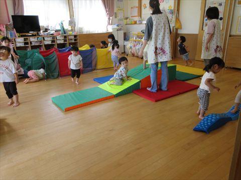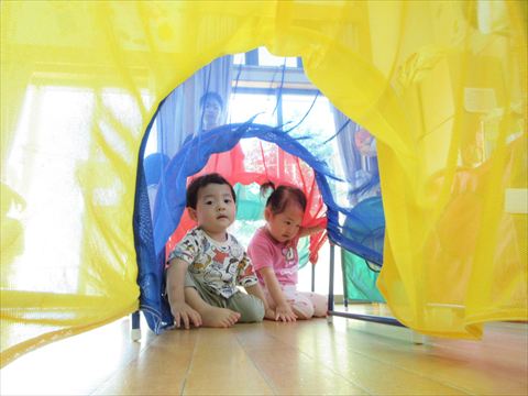 ひよこ組さんは、お部屋でゆっくり遊びました。