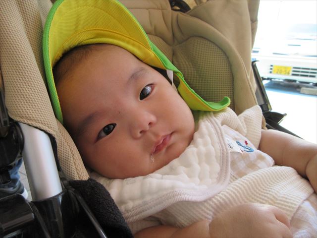 ベビーカーと散歩車に乗って
