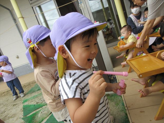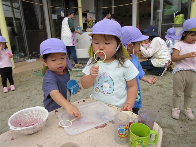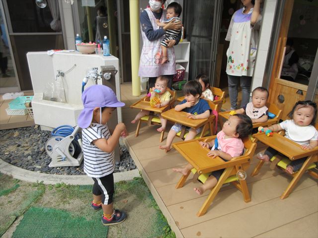 ぱんだ組、シャボン玉遊びをしました(*^^*)