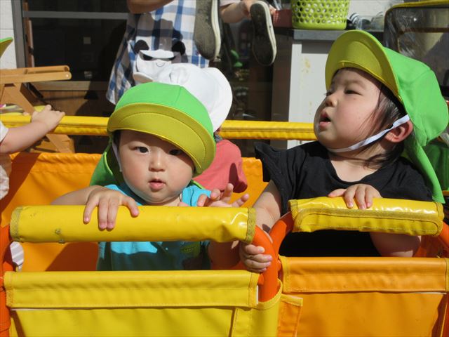 ベビーカーや散歩車に乗って
