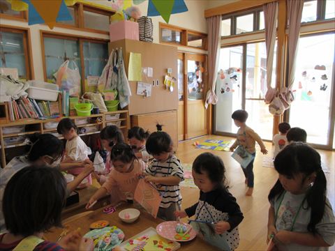 子ども達の安全を考慮して室内保育となりました。