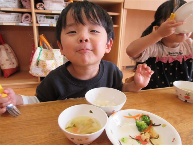 給食ももりもり食べましたよ♪