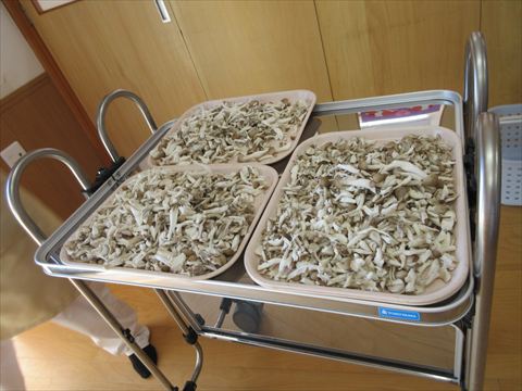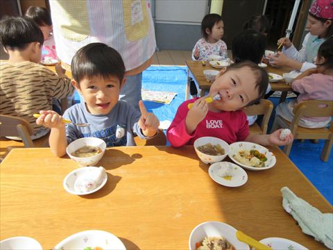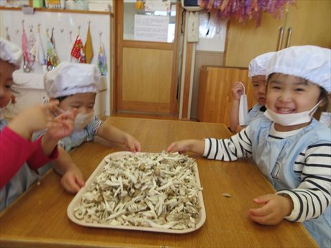 ぱんだ組さんが割いてくれたきのこは【芋煮】になりました。
