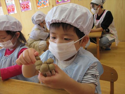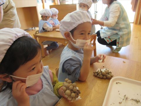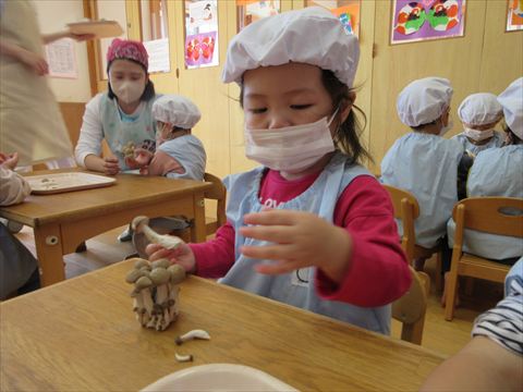 本日は、ぱんだ組さんは【食育活動の日】きのこさきです!!
