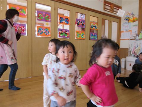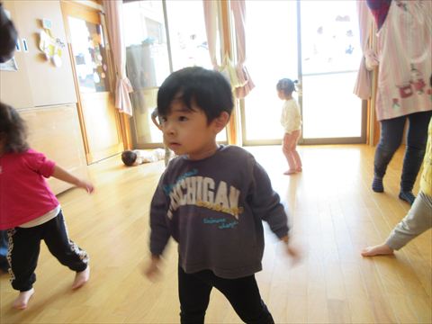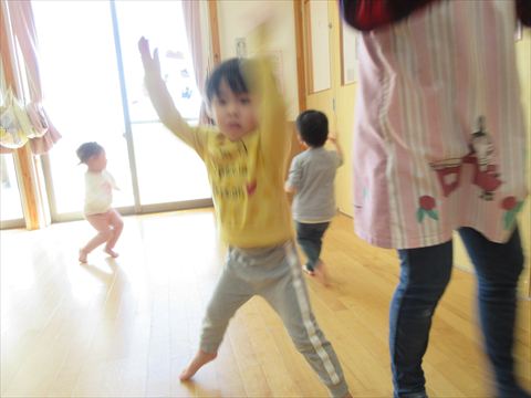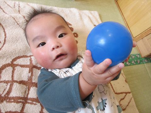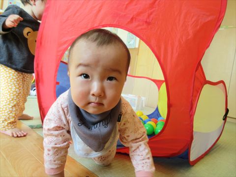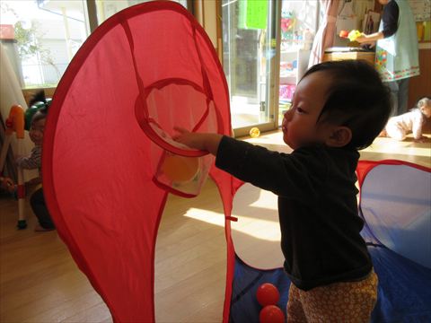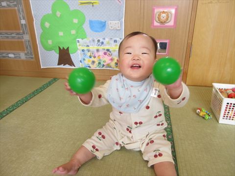 ひよこ組さんは、お部屋でボール遊びを楽しみました。