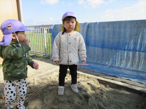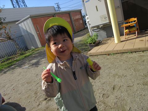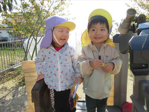 お日様が出てきて園庭にもレッツゴー(^▽^)/