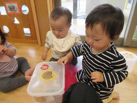 手作り「ポットン落とし」上手に遊びますよ~♬