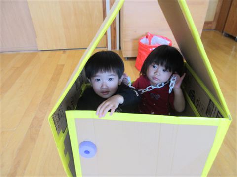 うさぎ組さん、段ボールハウスに入ってご機嫌💓