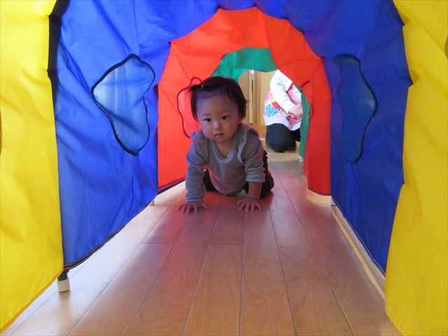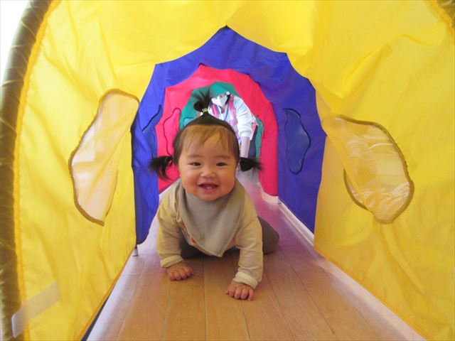 ひよこ組、トンネルと布団の山で遊びました!