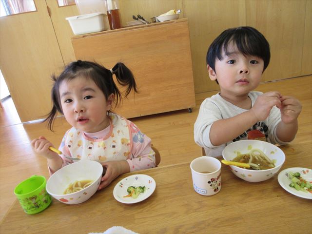 今日の給食はカレーうどん!