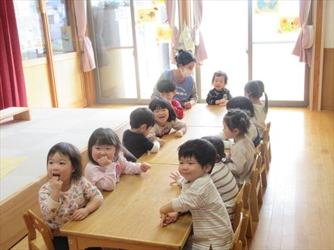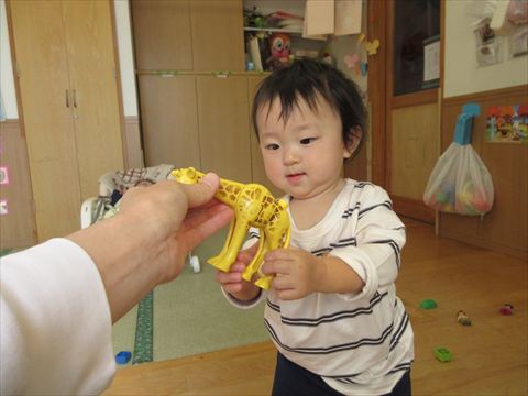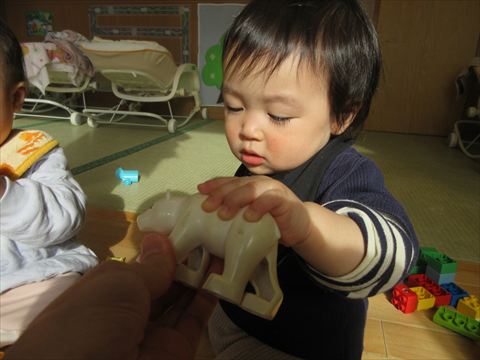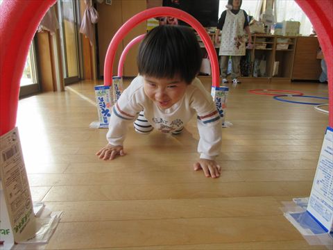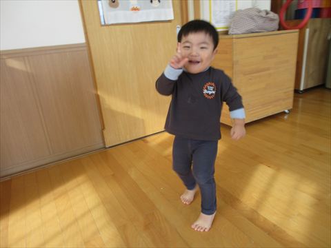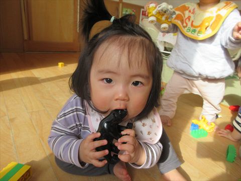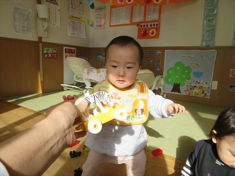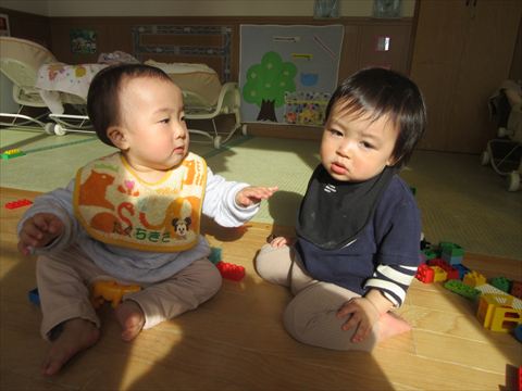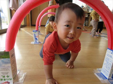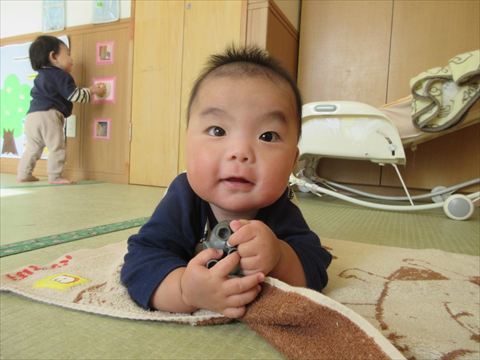 この笑顔可愛いですね~(保育園で一番小さいおとも達です。)