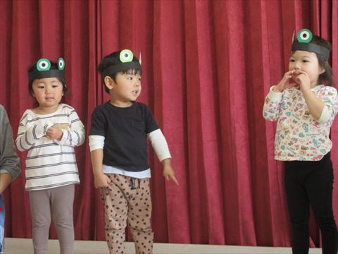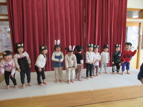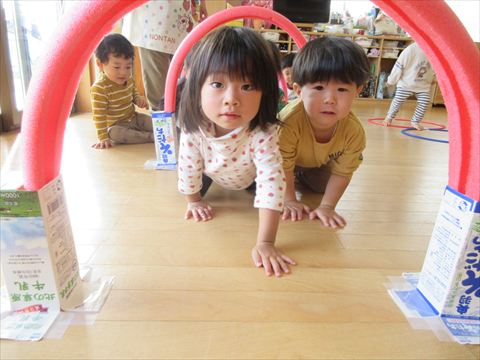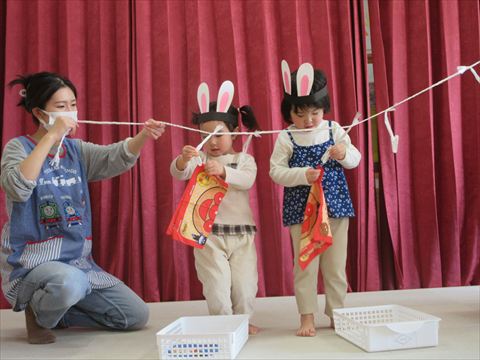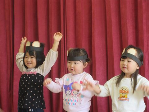 うさぎ組さん、体を動かして遊んでいます。
