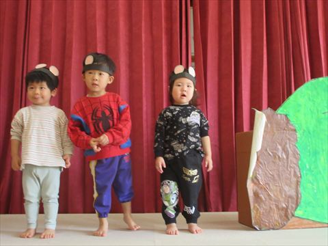 今日は、ぱんだ組さんが、ステージ上でのおゆうぎ会初めての練習をしました。