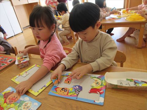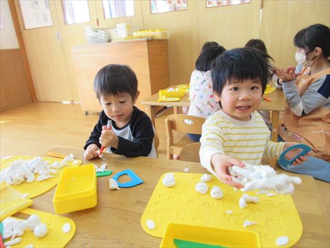2025.12.12 今日のかめら(^^♪ ひよこ組さん、動きが活発になってきました!! 高い所に立てるようになったよ。 「ほら、見て~!」 うさぎ組さんも、たくさん体を動かしています。 たくさんのボールってやっぱり楽しいね(^▽^)/ ぱんだ組さんは、粘土&パズル遊び♬ じーっ \(^_^)/完成だー!! とうとうまた雪が降ってきました。⛄ 12月ですもんね~ あっと言う間にクリスマス🎄も来てしまいそうです。 寒いので体調管理大変ですがよろしくお願いします。 また、来週お待ちしております。