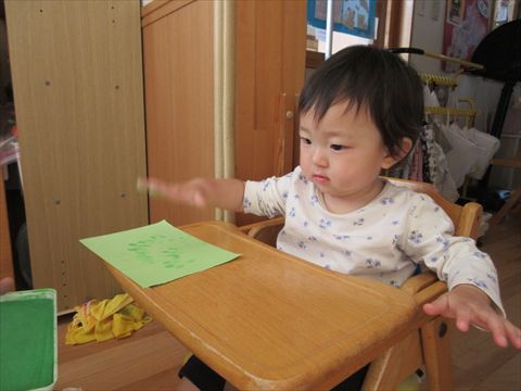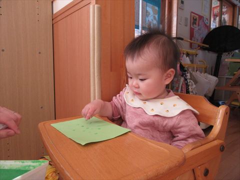 ひよこ組さんは、絵の具でちょんちょんと制作しています。