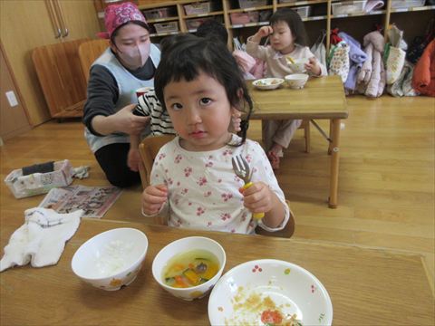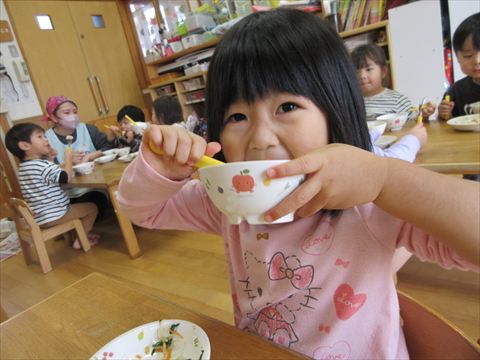 ぱんだ組さんは、園庭でいっぱい遊んだあと給食をたくさん食べました。